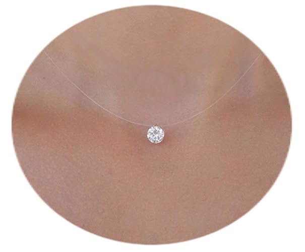 Collier Invisible Fil Nylon Peche Ras De Cou Strass Diamant