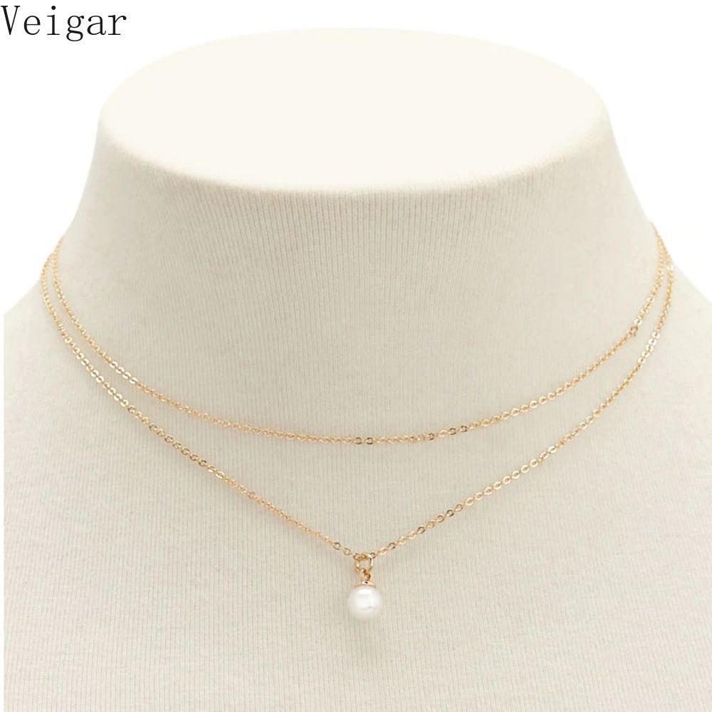 Acheter Double Chaîne Collier Ras Du Cou Imitation Perles Pendentifs