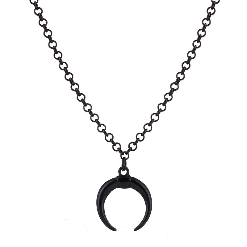 Acheter Ethnique Croissant Corne Pendentif Collier Rétro Noir Os