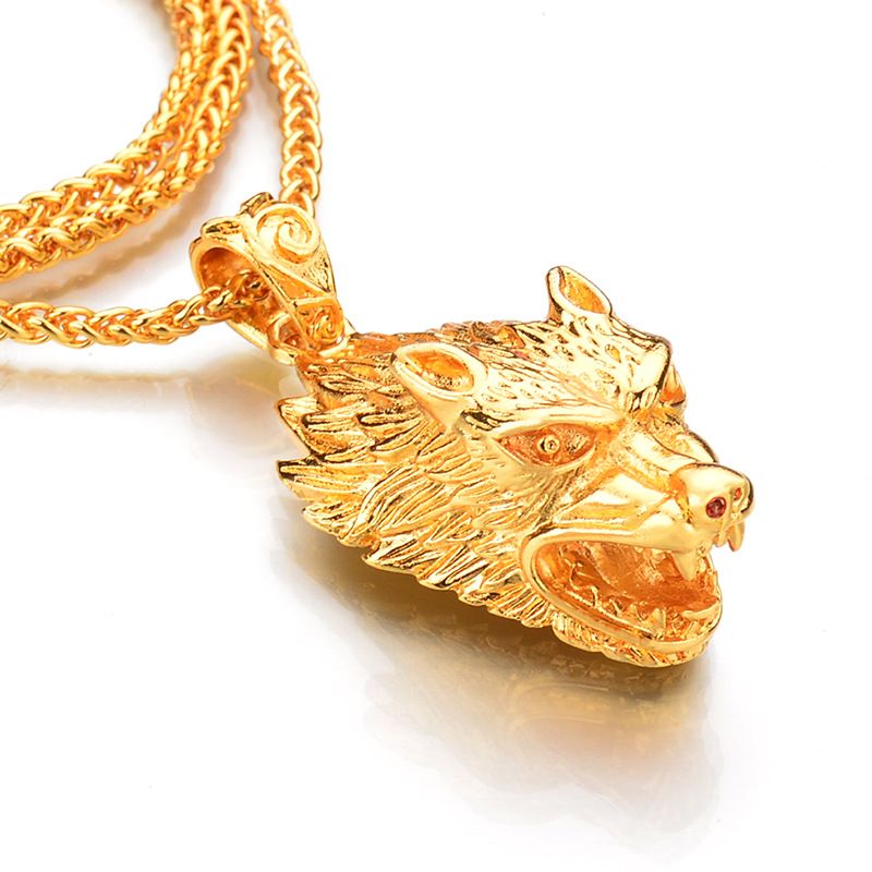 Acheter Nouveau 75 Cm Long Hommes Collier Pendentif Or Couleur Loup