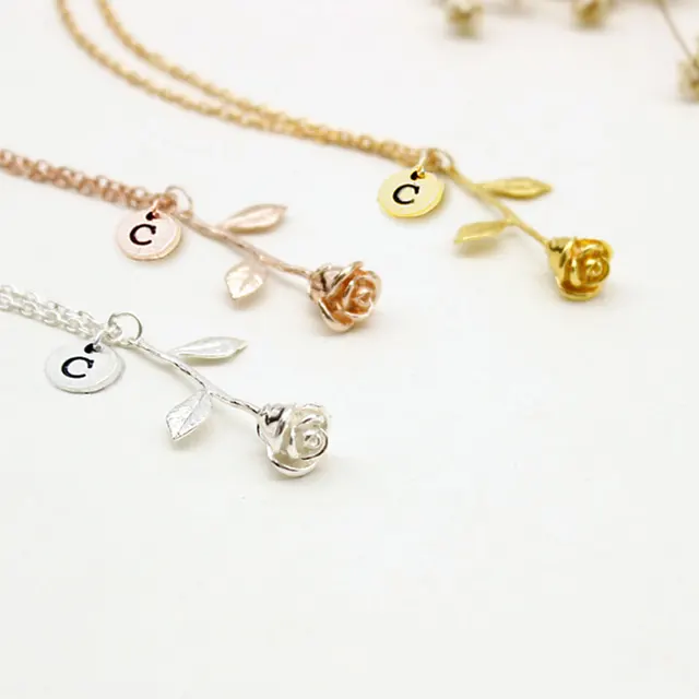 Lettre J Pendentif Rose Collier Saint Valentin Cadeau Personnalisé